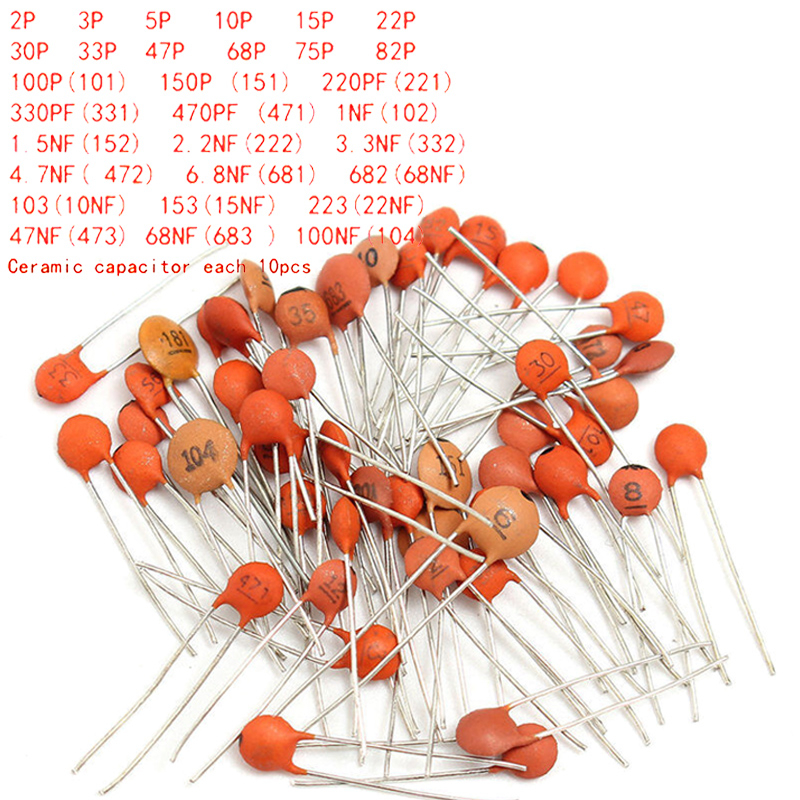 Included Capacitance Values and Codes:This kit includes 30 distinct capacitance values, listed below in ascending order, along with their typical markings as found on ceramic capacitors: